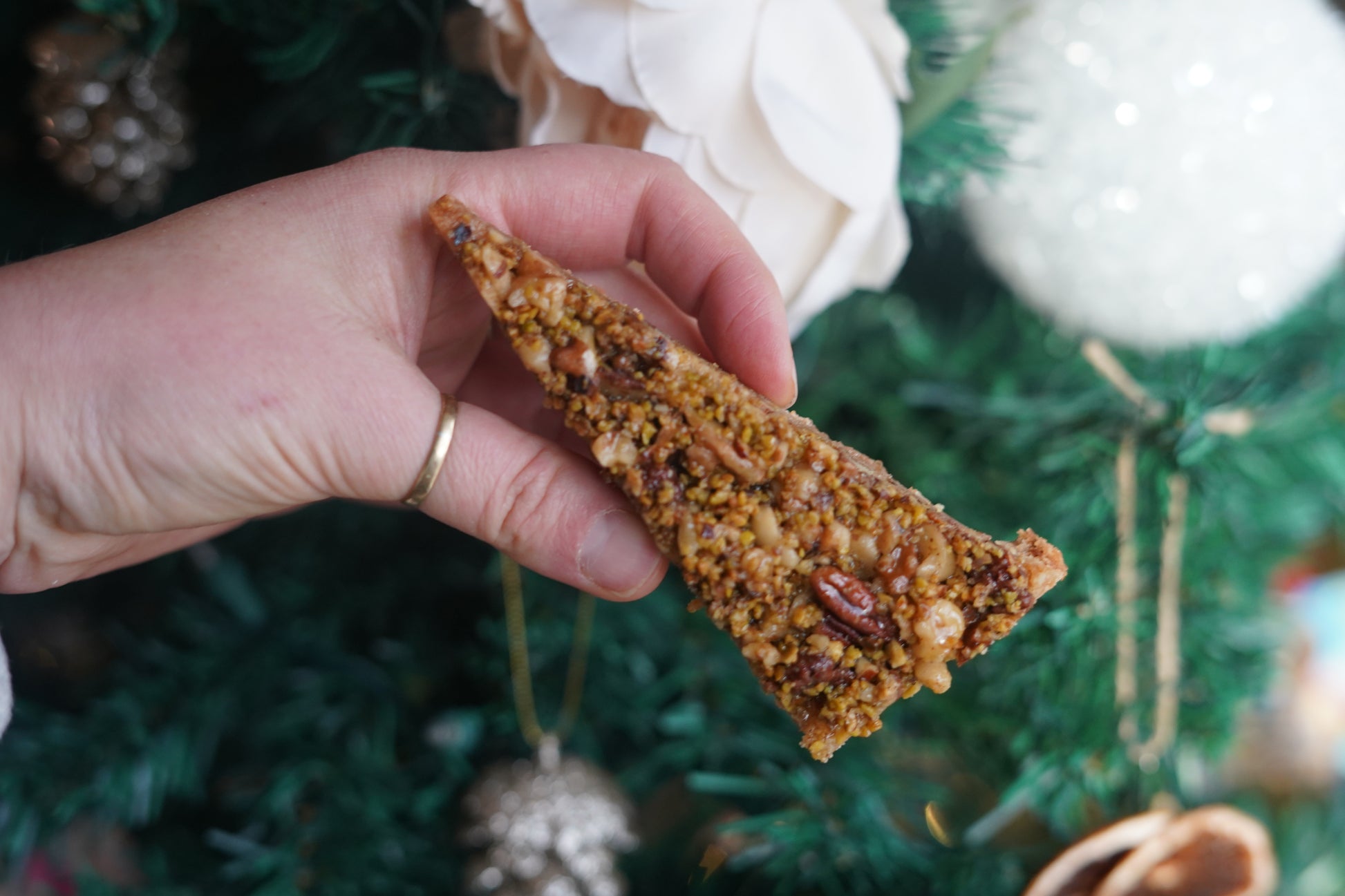 A true delight for those who love a crunchy nut! A shortbread crust, topped with pecans, walnuts and pistachios, then drizzled with an orange blossom syrup. Not overly sweet but the perfect bite!
